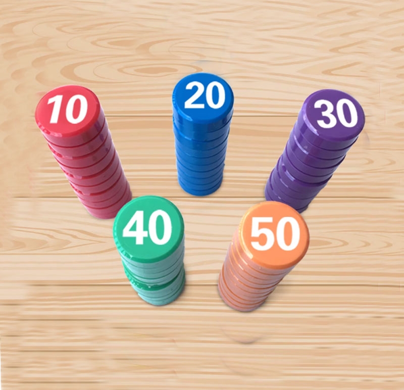 10 viên/tấm, 5 tấm/bộ, tổng cộng 50 số; kết hợp 2 bộ để đủ dãy 1–100.