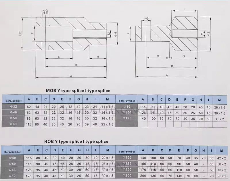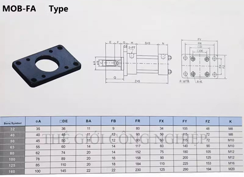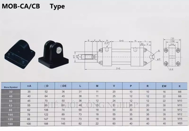 Phạm vi sử dụng: Phù hợp cho xi lanh tiêu chuẩn loại MOB các size Ø40, Ø50, Ø63, Ø80, Ø100, Ø125 và Ø150.