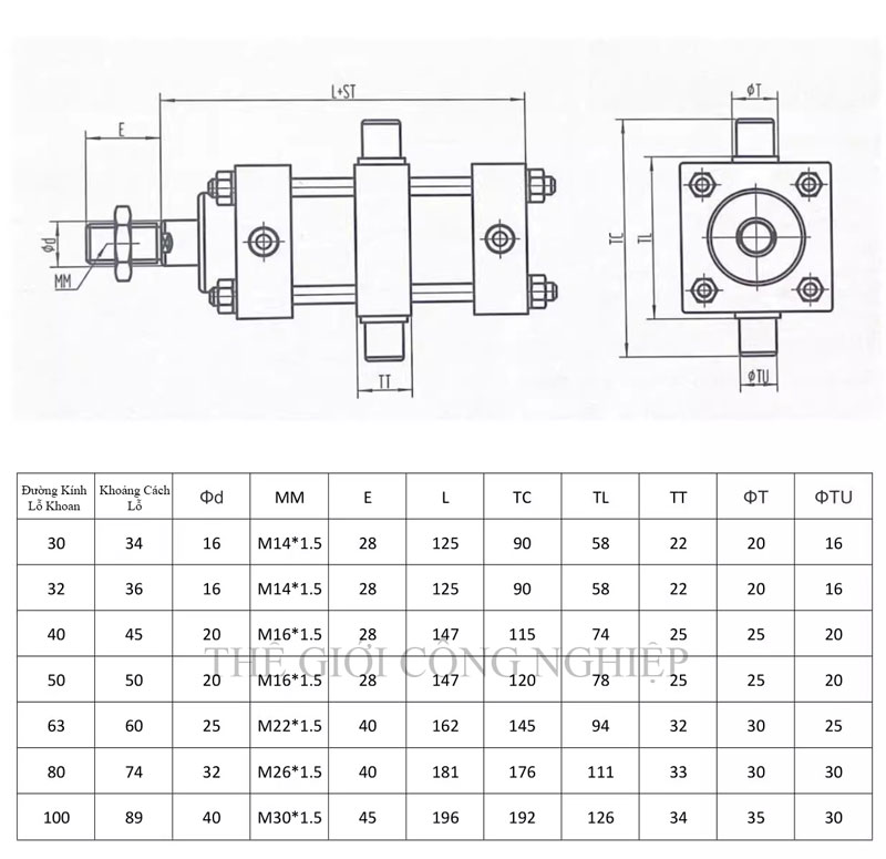 Ứng dụng: Phù hợp với các vị trí lắp cố định một đầu xi lanh, không gian hạn chế chiều dài phía sau.