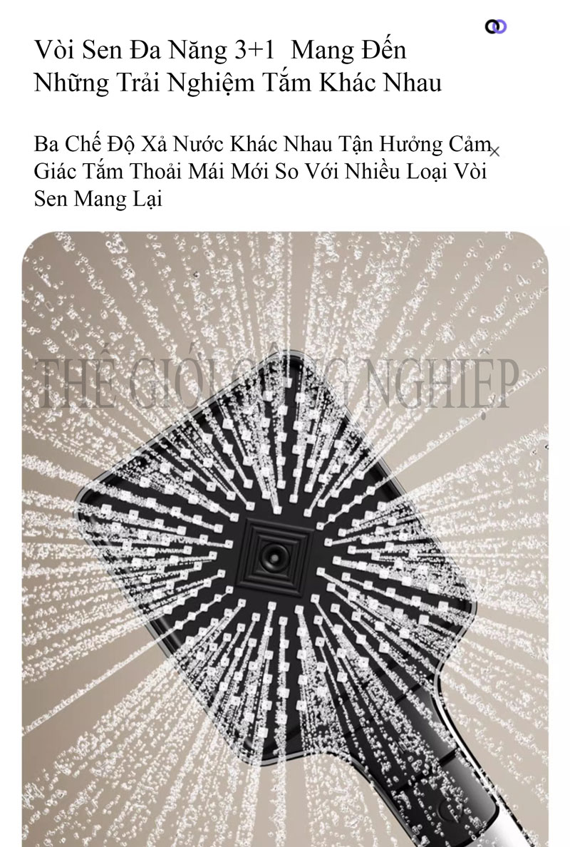 - Vòi sen cầm tay có nhiều chế độ phun: Massage, phun mưa, phun hỗn hợp, giúp đáp ứng nhu cầu thư giãn của từng thành viên trong gia đình.