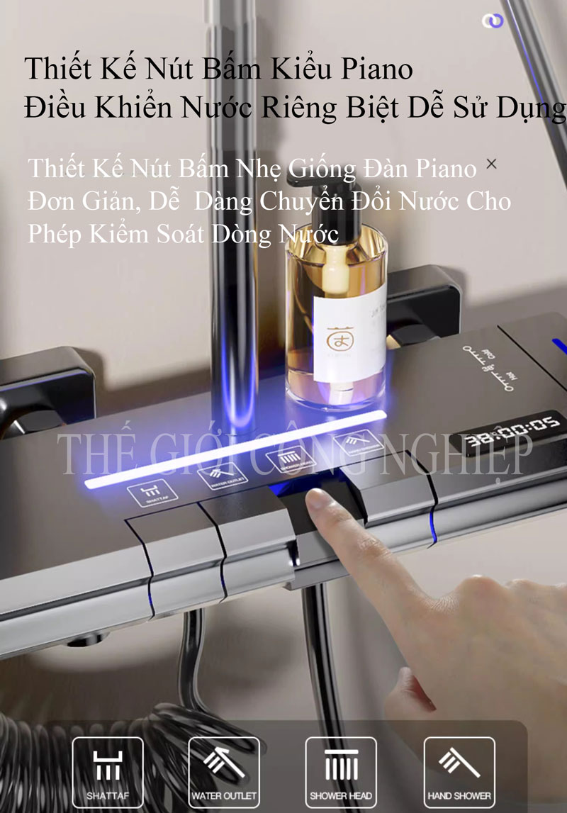 Bộ vòi hoa sen điều chỉnh nhiệt độ bằng nút ấn và màn hình hiển thị nhiệt phủ PVD là lựa chọn lý tưởng cho những ai tìm kiếm sự kết hợp hoàn hảo giữa công nghệ hiện đại, thiết kế thẩm mỹ và an toàn vượt trội trong không gian phòng tắm.