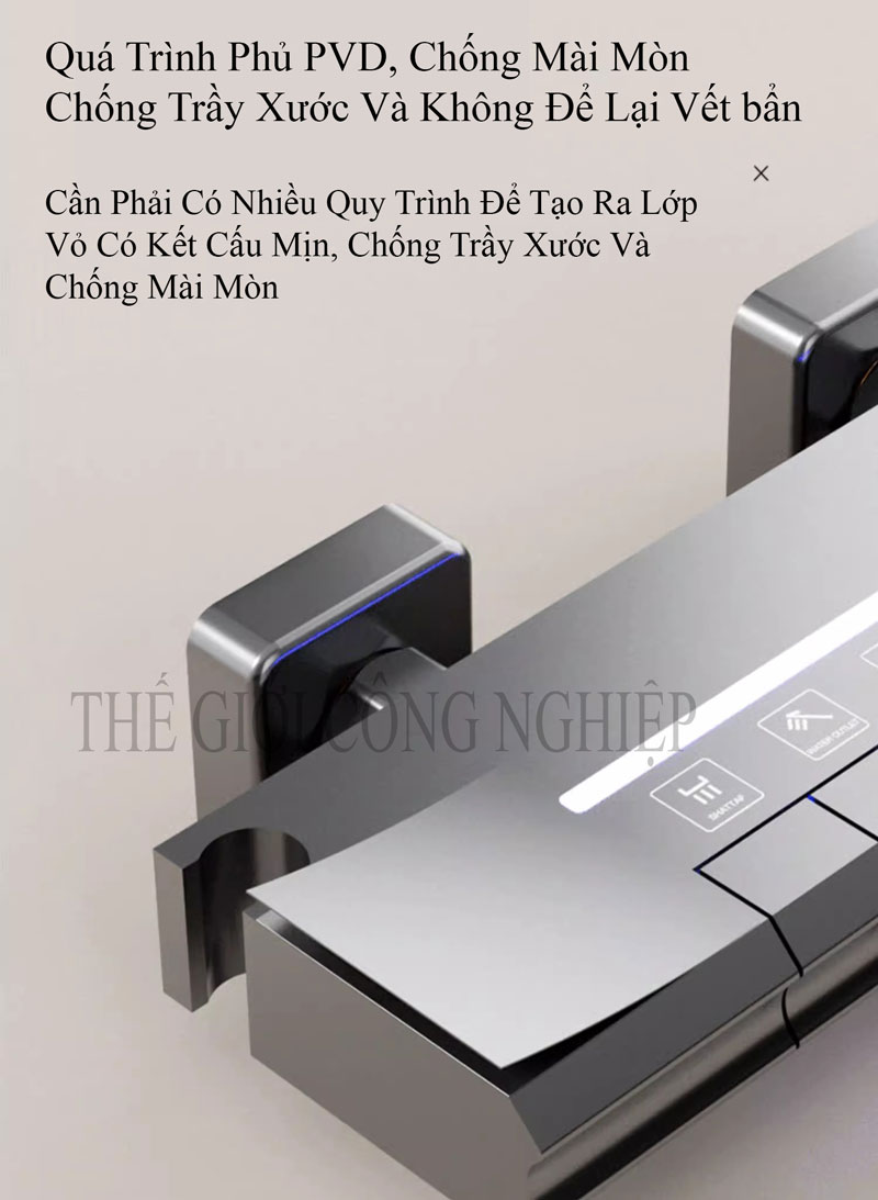 - Bề mặt phủ PVD không chỉ chống gỉ mà còn tạo nên vẻ đẹp thẩm mỹ cao cấp, dễ dàng hòa hợp với mọi không gian phòng tắm.