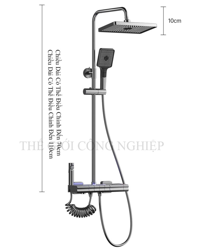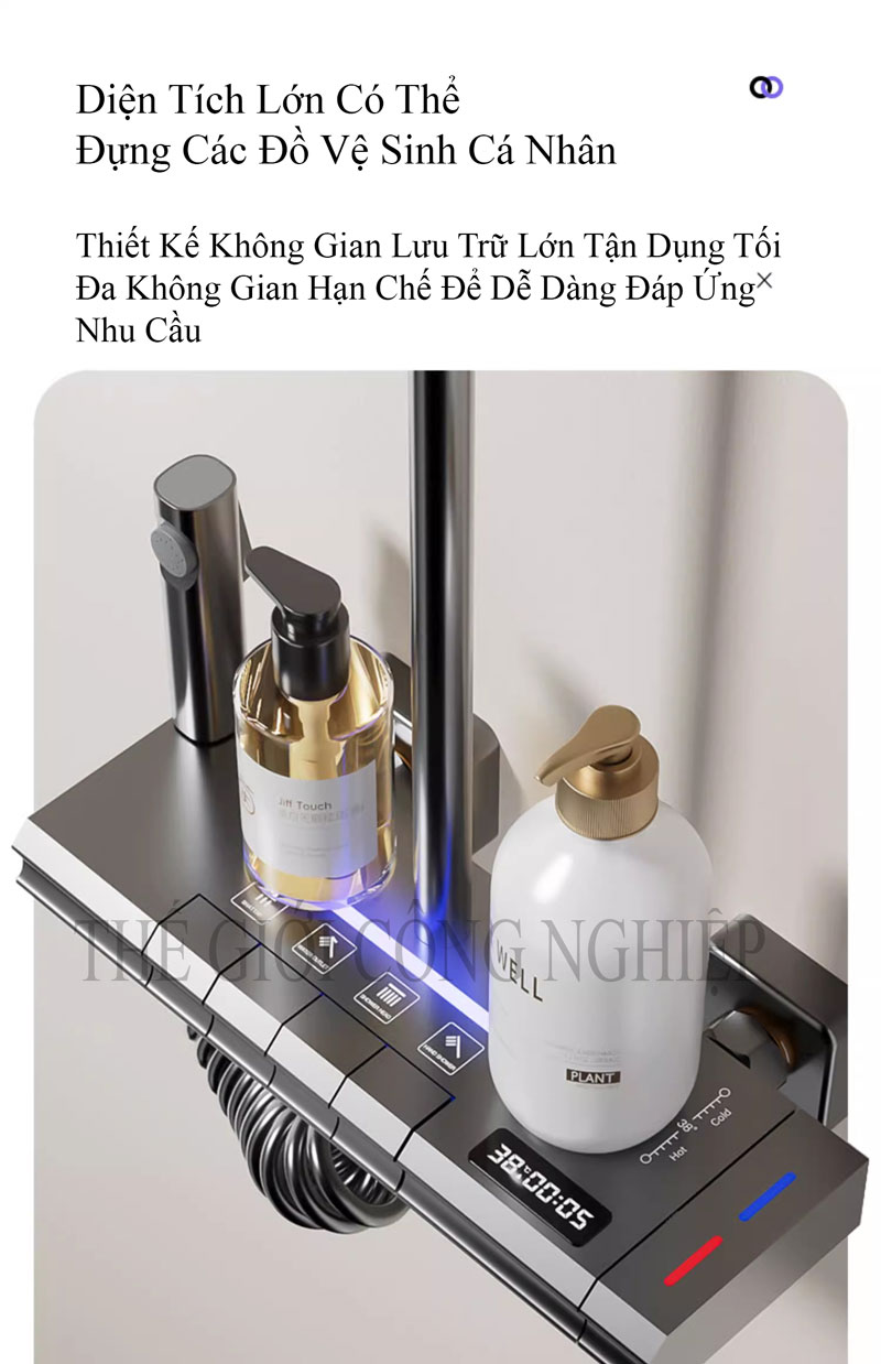 Mô tả chi tiết: Bộ vòi hoa sen phòng tắm gia đình có thể điều chỉnh nhiệt độ bằng nút ấn và màn hình hiển thị nhiệt phủ PVD