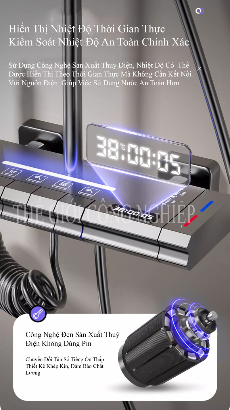 - Màn hình kỹ thuật số LCD hoạt động dựa trên năng lượng dòng chảy của nước, không cần pin, hiển thị nhiệt độ nước chính xác trong thời gian thực.