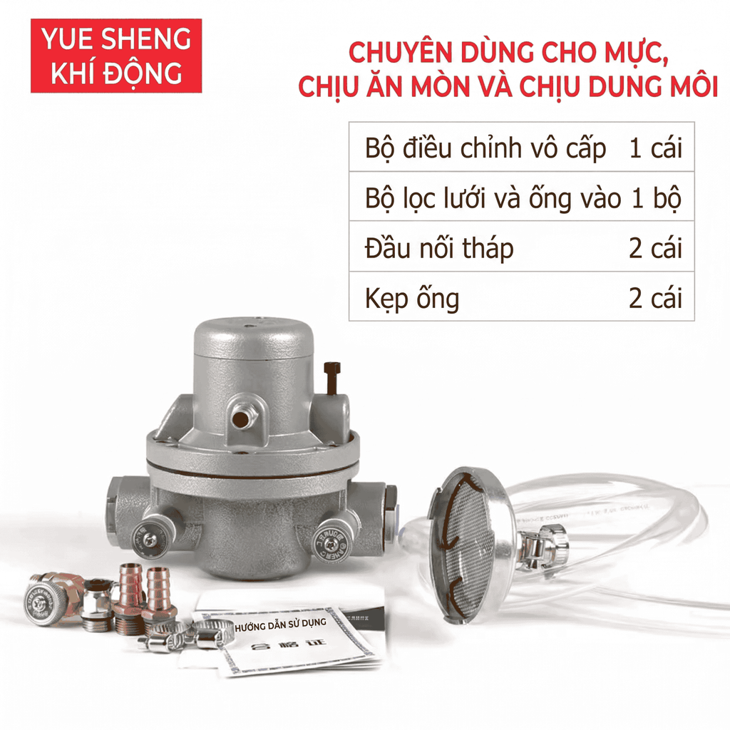 Hoạt động bằng khí nén an toàn: Không sử dụng điện, chống cháy nổ hiệu quả, phù hợp môi trường sản xuất công nghiệp.