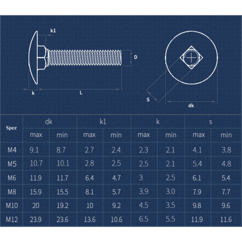 Bảng Thông Số Kỹ Thuật Bu Lông Lục Giác Đầu Tròn M6 M8 M10 M12: