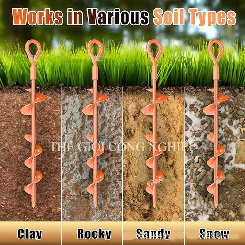 - Thiết kế chắc chắn: Có rãnh xoắn hoặc răng cưa giúp tăng độ bám vào đất.