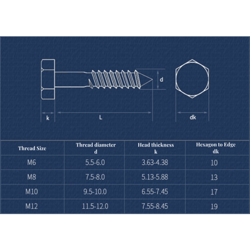 Bảng Thông Số Kỹ Thuật Bu Lông Vít Giác Tự Khoan m6 m8 m10 m12
