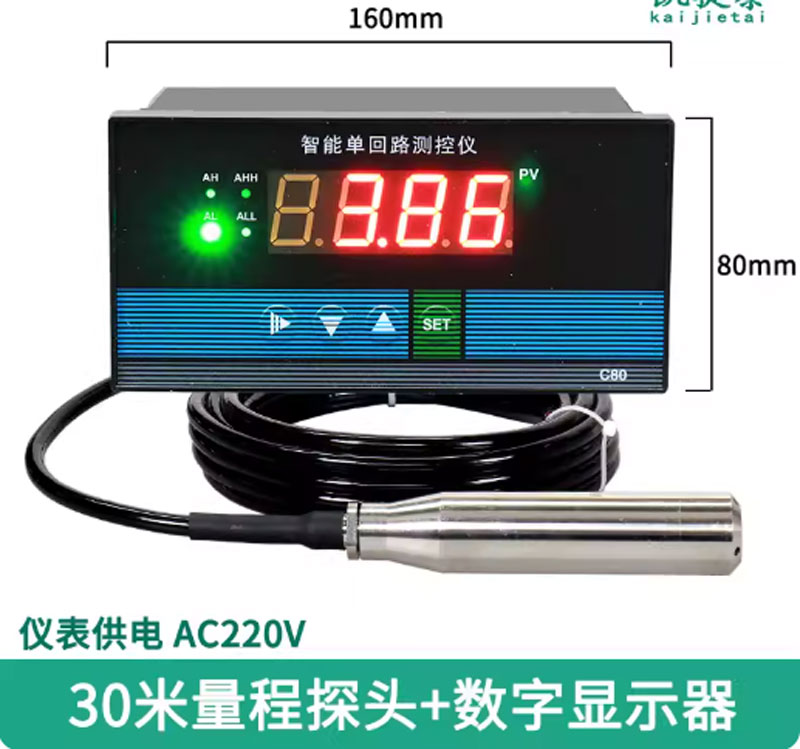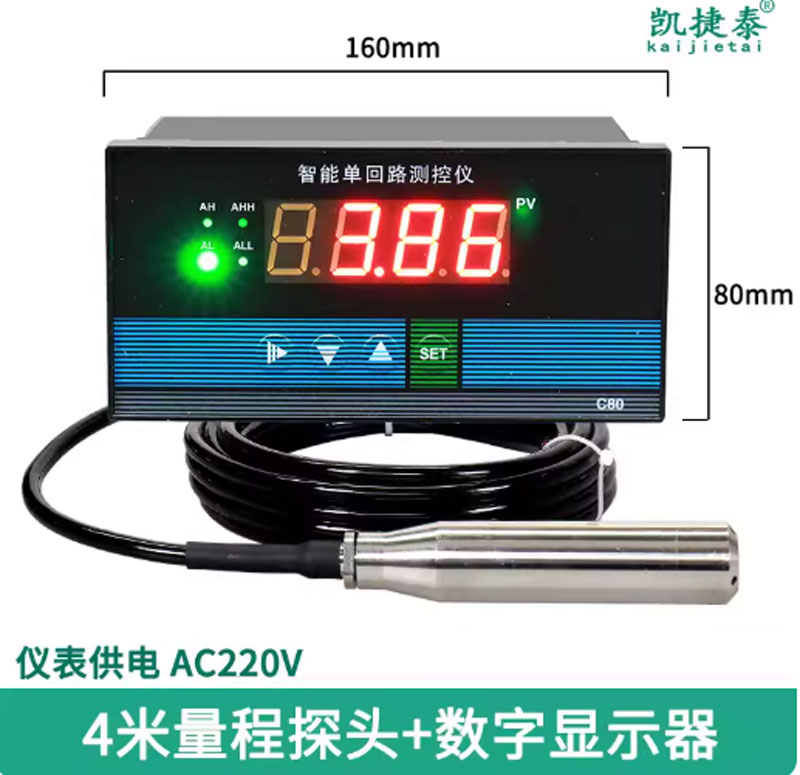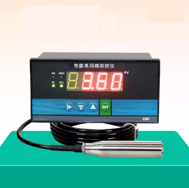 Cảm biến mực nước thả chìm gồm hai bộ phận chính: cảm biến thả chìm và màn hình hiển thị kỹ thuật số. Phần cảm biến được làm từ vật liệu chống ăn mòn và chịu nước cao cấp, thường là inox 304 hoặc nhựa kỹ thuật cao, đảm bảo hoạt động ổn định trong môi trường nước sạch hoặc nước có tạp chất nhẹ. Màn hình hiển thị thường là LCD hoặc LED, gắn trên tường hoặc đặt gần bể chứa, hiển thị mực nước theo cm, % hoặc cấp độ.