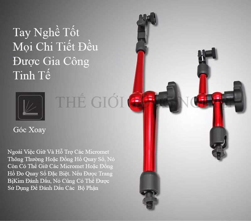 Cần gắn đa khớp hoặc cần xoay linh hoạt, cho phép điều chỉnh vị trí đồng hồ so theo nhiều hướng.