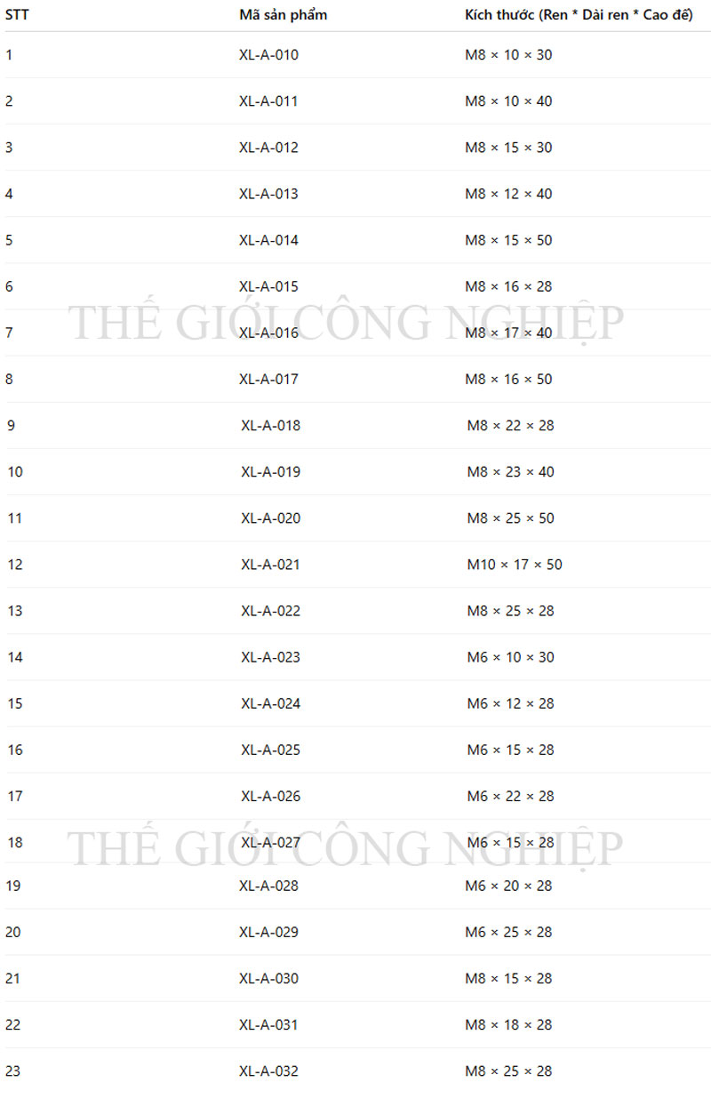 Đường kính ren: M6 / M8 / M10 / M12 / M16