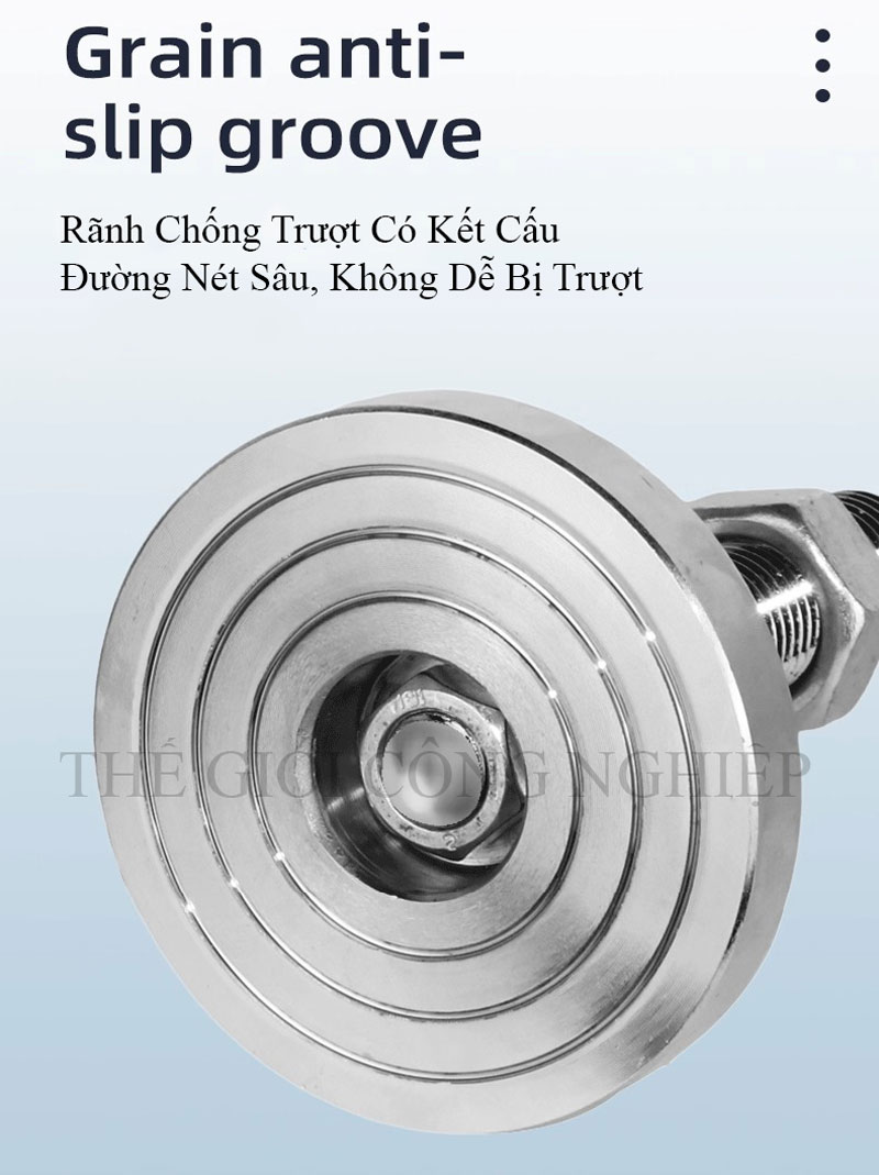 Bề mặt đế: Có rãnh chống trượt – giúp đế bám tốt trên sàn gạch, bê tông hoặc thép, hạn chế trượt khi vận hành.