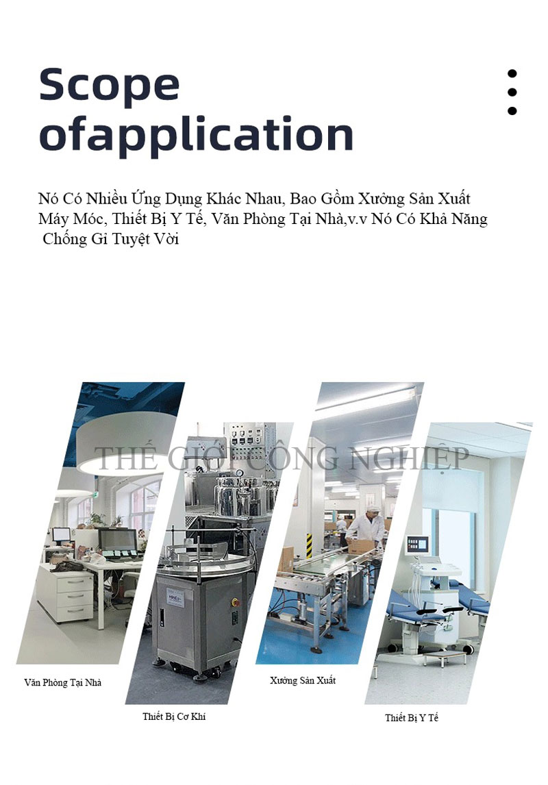 Tải trọng: Thiết kế chịu được tải nặng – phù hợp với máy CNC, máy ép, tủ điện, dây chuyền công nghiệp,...