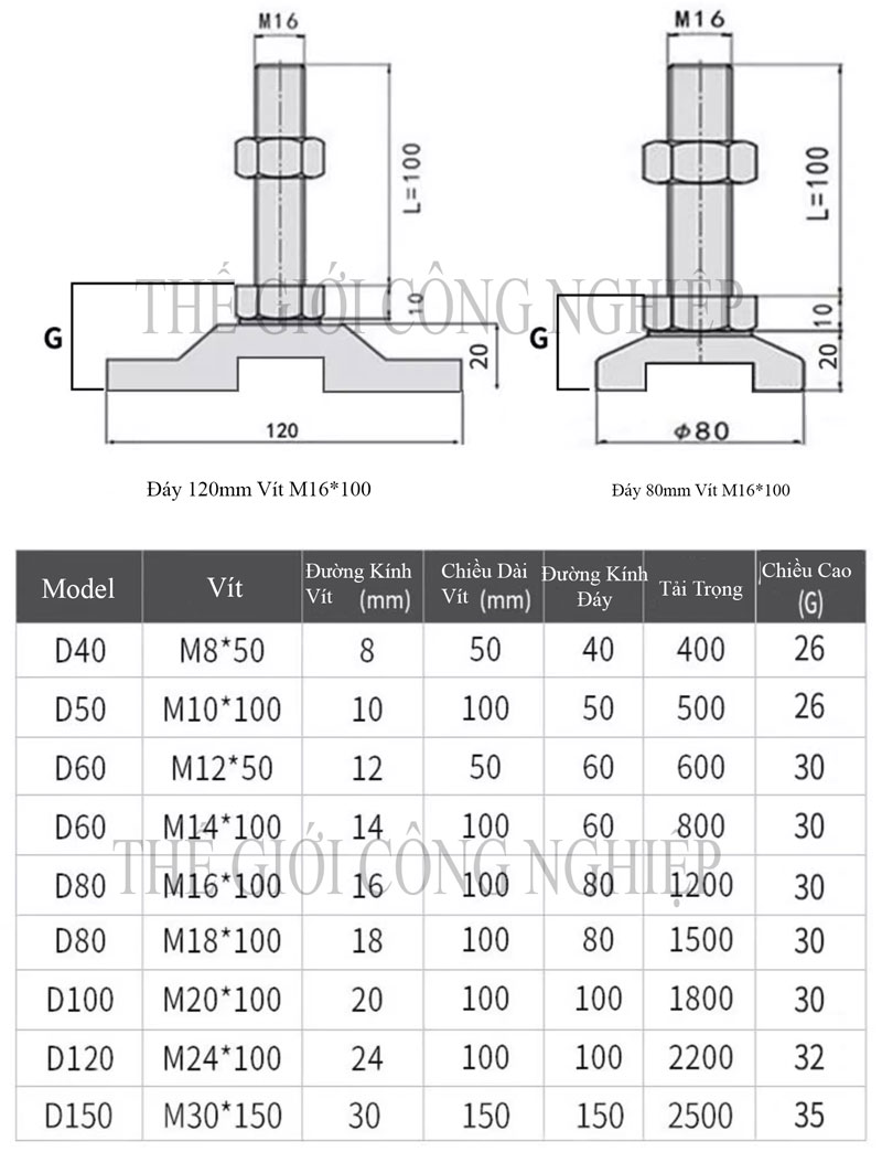 Ren: Tùy chọn M12, M16, M20 – phù hợp nhiều thiết bị, tải trọng khác nhau.