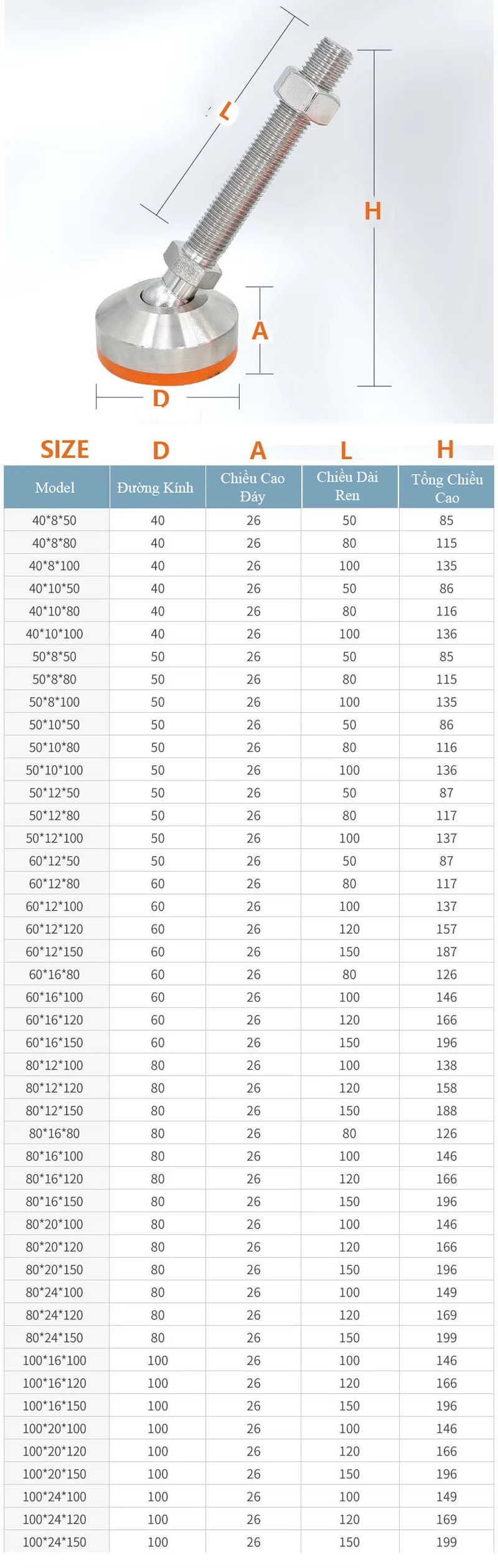 Chân Tăng Chỉnh Máy Công Nghiệp Đa Hướng Tải Nặng là phụ kiện chuyên dùng để cân bằng, cố định và giảm rung cho các loại máy móc có tải trọng lớn trong nhà xưởng, khu công nghiệp. Sản phẩm cho phép điều chỉnh độ cao linh hoạt và tự xoay đa hướng, giúp máy luôn ổn định ngay cả trên bề mặt sàn không bằng phẳng.