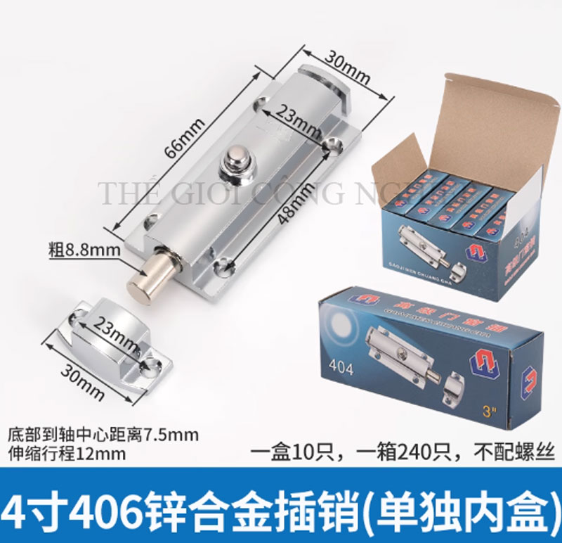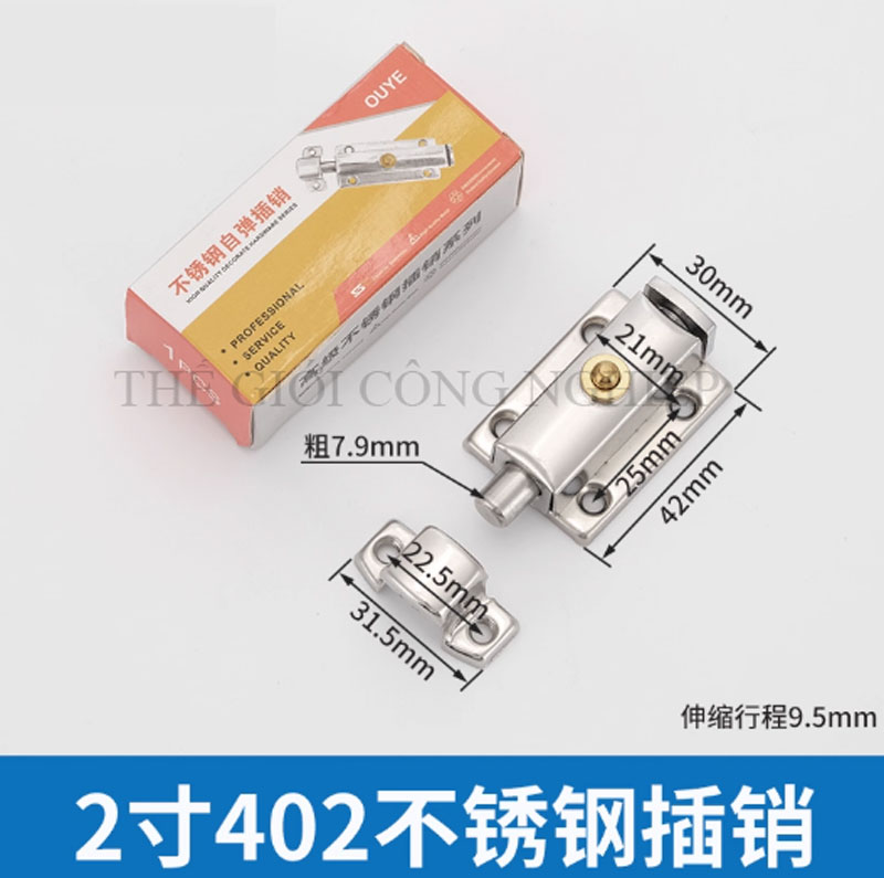 Chốt được chế tạo từ hợp kim kẽm bền chắc, chống gỉ sét, chịu lực tốt, kết hợp cùng lò xo inox 304 có độ đàn hồi cao, đảm bảo chốt hoạt động ổn định và bền bỉ sau thời gian dài sử dụng. Với hai tùy chọn kích thước 3 inch và 4 inch, sản phẩm đáp ứng đa dạng nhu cầu lắp đặt trên nhiều loại cửa khác nhau.