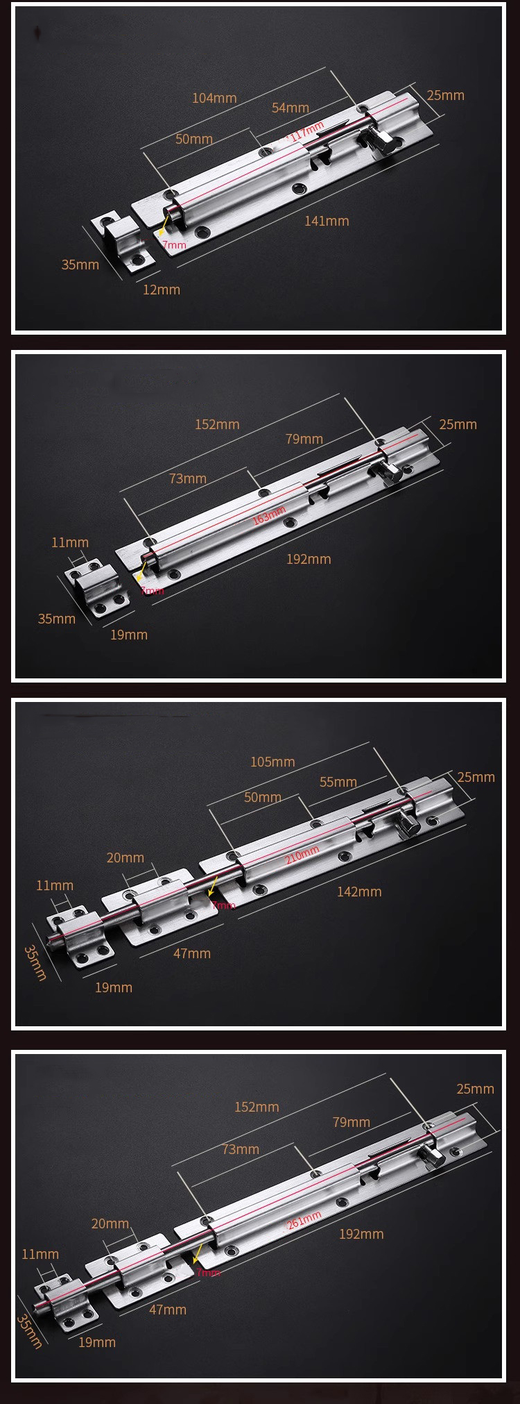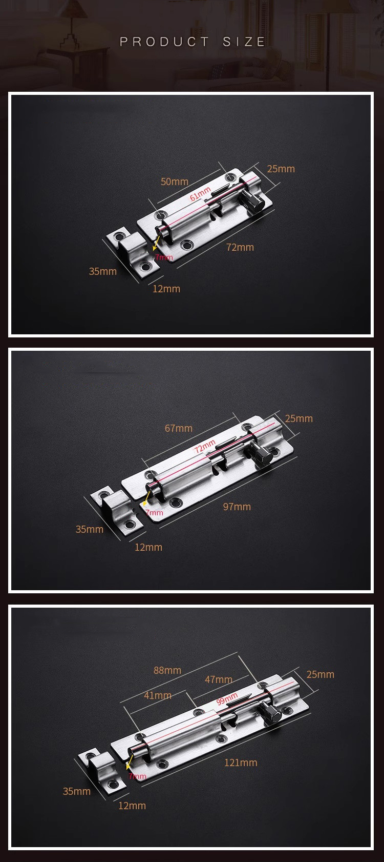 Kích thước: Đa dạng kích thước để phù hợp với nhiều loại cửa khác nhau, từ cửa gỗ đến cửa sổ và cửa phòng tắm.