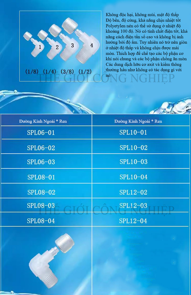 Co nối góc nhanh PP 6mm 8mm 10mm 12mm – Chống ăn mòn, chịu hóa chất