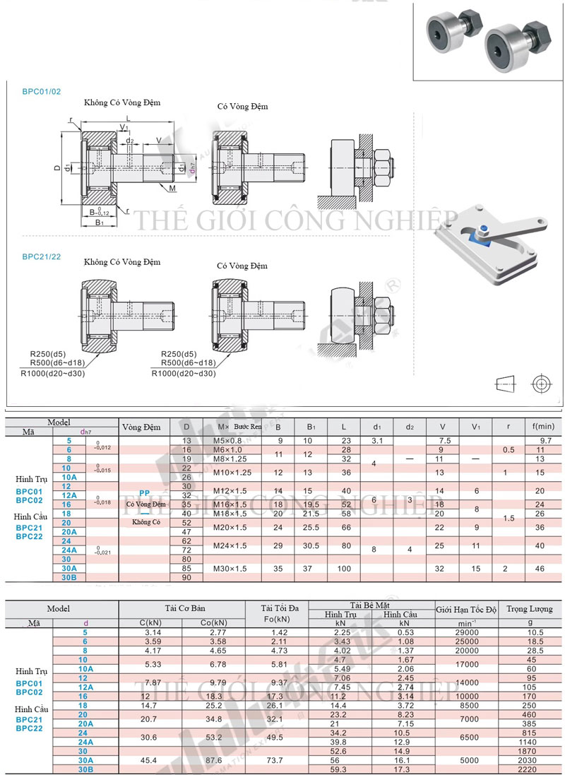 Mô tả chi tiết – Con lăn cam dẫn hướng BPC 01 02 21 22 – 3 4 5 6 8 10 12 16 18 20 24 A: