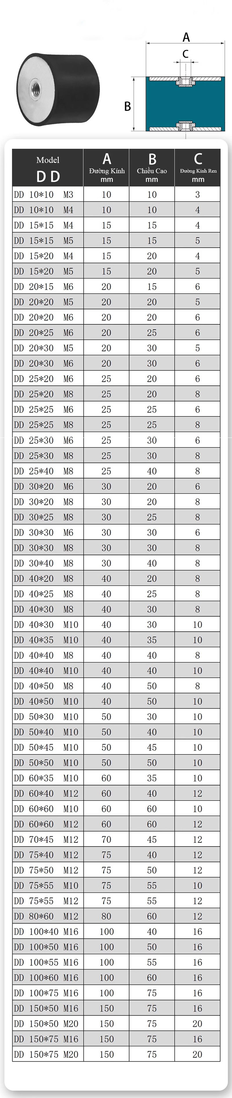 - Tất cả các thông số kỹ thuật đều đi kèm với ren ngoài và ren trong giúp dễ dàng lắp đặt.