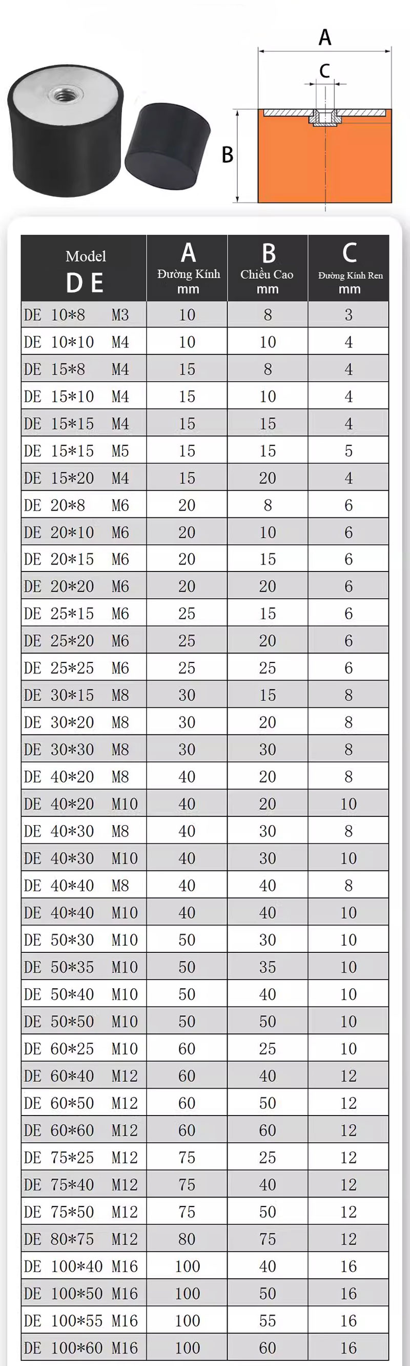 - Tất cả các thông số kỹ thuật đều đi kèm với ren ngoài và ren trong giúp dễ dàng lắp đặt.
