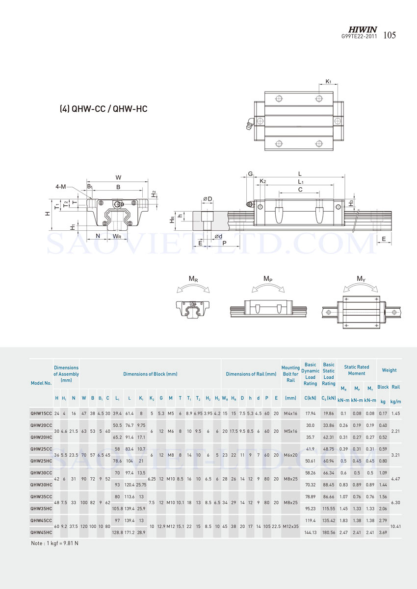 BẢNG THÔNG SỐ KỸ THUẬT CON TRƯỢT HIWIN
