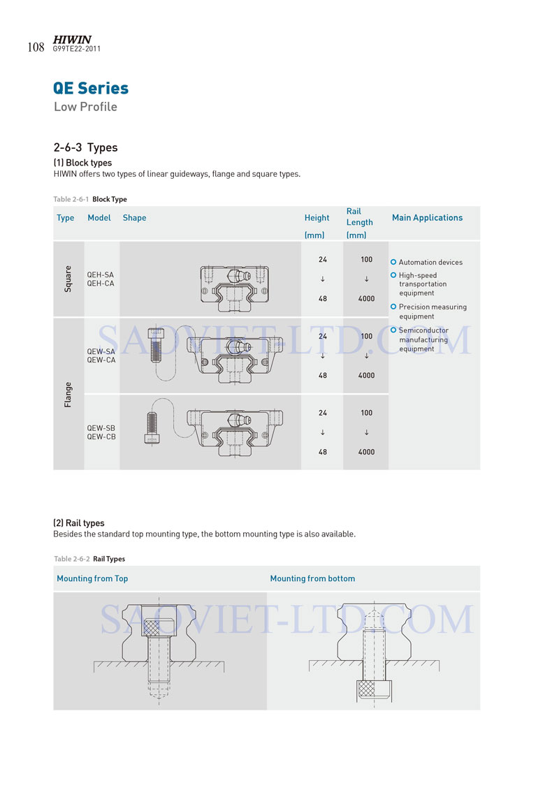 Đặc Điểm Con Trượt Hiwin QEH15, QEH20, QEH25, QEH30, QEH35, CA, SA