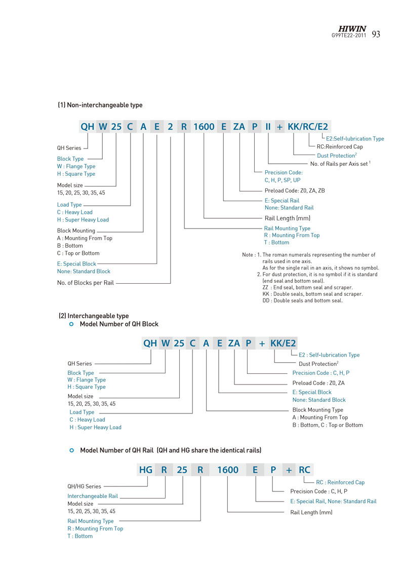 Ý nghĩa các chữ số Hiwin QEH-CA / QEH-SA