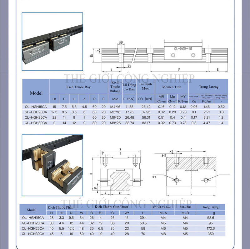 Chuẩn kích thước: HGH/HGW 15 / 20 / 25 / 30 (thay thế 1:1 cho Hiwin)