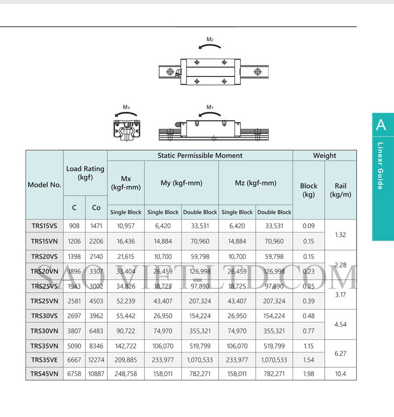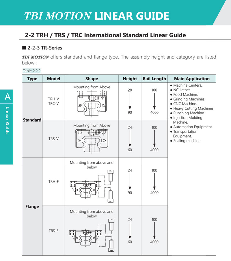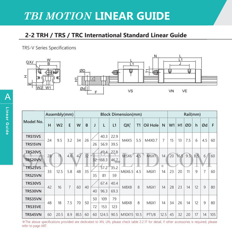 Con Trượt TBI TRS15, TRS20, TRS25, TRS30, TRS35, VN, VS, VE