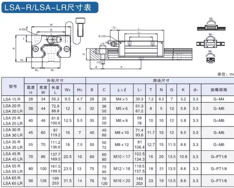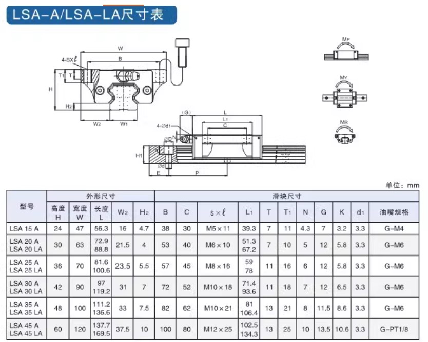 LSA35R – LSA45R – LSA55R: tải nặng, hành trình lớn, dùng cho máy lớn, độ cứng cao