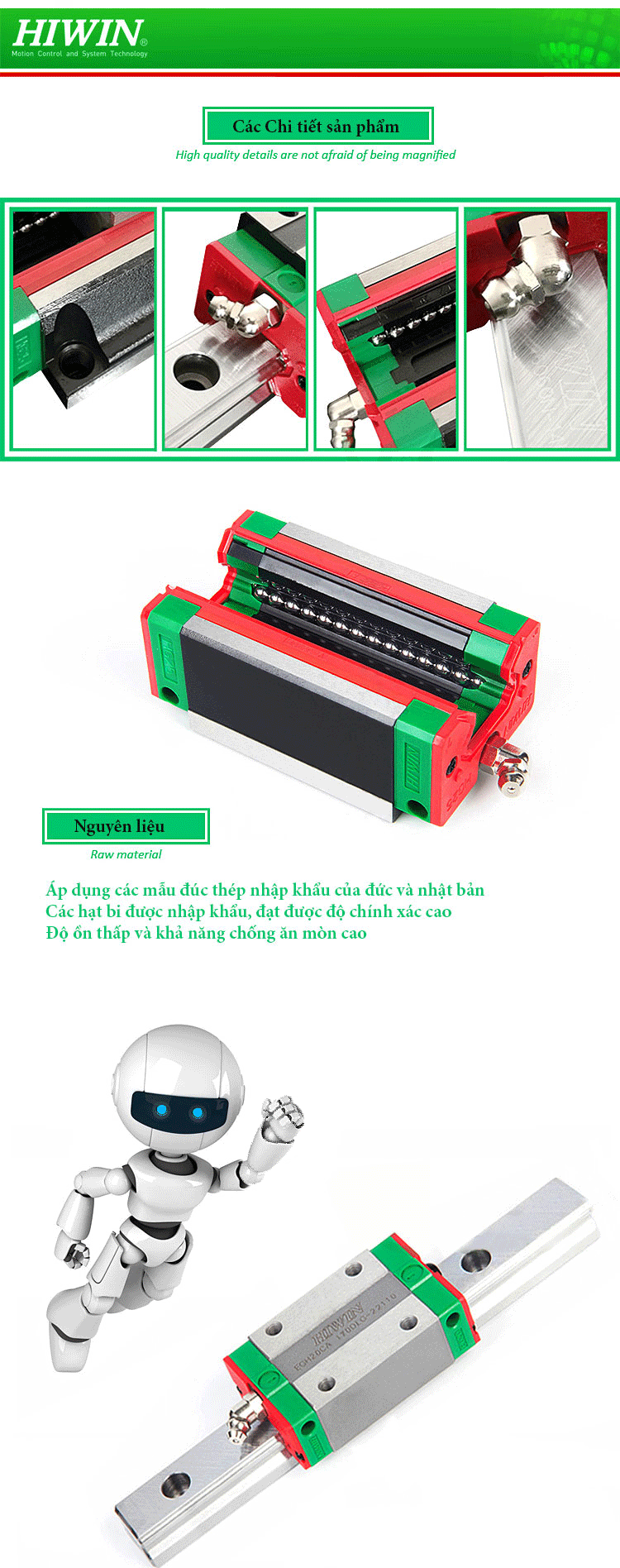 -Có độ chính xác cao, Chuyển động thẳng mượt, ma sát thấp, tiếng ồn thấp
