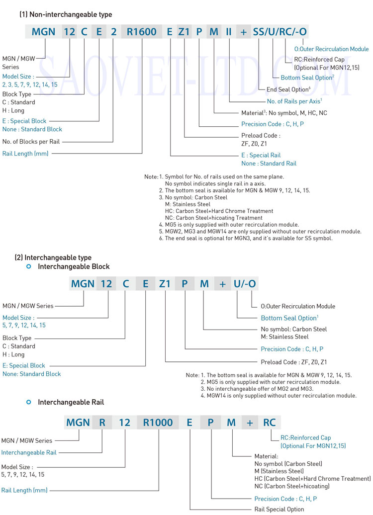 BẢNG THÔNG SỐ CON TRƯỢT VUÔNG HIWIN MGN3C, MGN7C, MGN9C, MGN12C, MGN15C