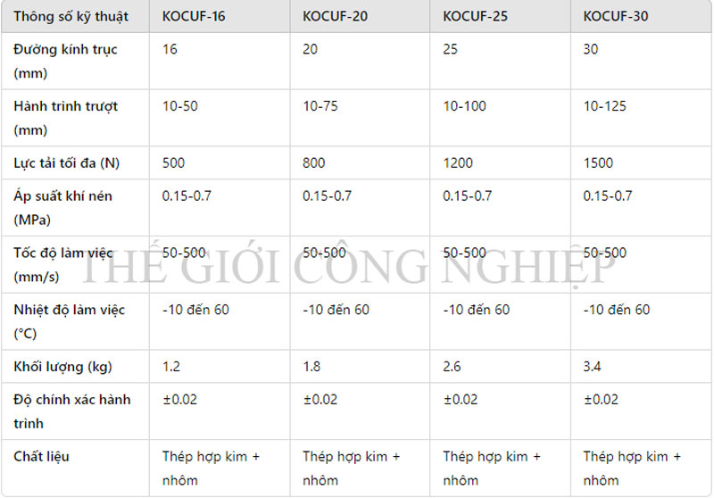 - KOCUF-25: Được sử dụng trong các ứng dụng yêu cầu độ bền cao và hành trình dài.