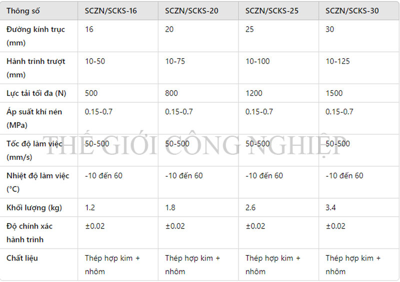 - Đa dạng kích thước: Với các mã kích thước 16, 20, 25, 30, cụm trượt SCZN/SCKS có thể đáp ứng nhiều loại ứng dụng với các yêu cầu khác nhau về tải trọng và hành trình.