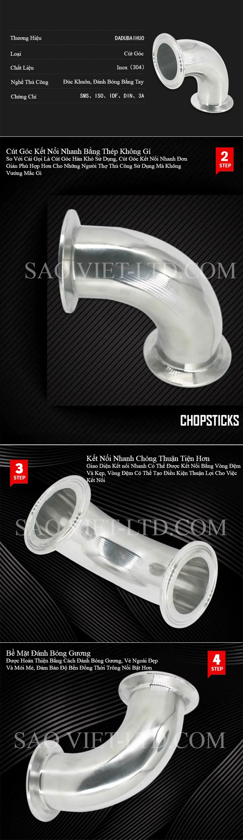 Mô tả chi tiết về Cút góc inox tháo lắp nhanh kiểu clamp kẹp: