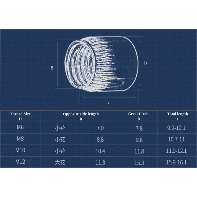 Bảng Thông Số Kỹ Thuật Đai Ốc Côn Hình Nón m6 m8 m10 m12 :