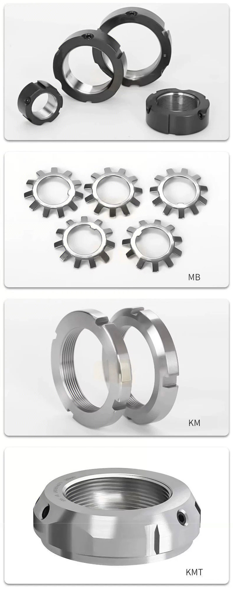 - KMTA: đai ốc chính xác cao, dùng cho hệ yêu cầu độ đồng tâm và độ ổn định cao