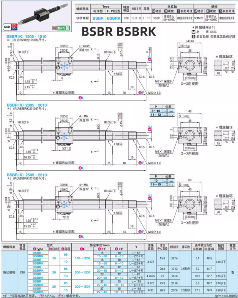 Bảng Thông Số Kỹ Thuật Đai Ốc Trục Vít BSBR/BSBRK