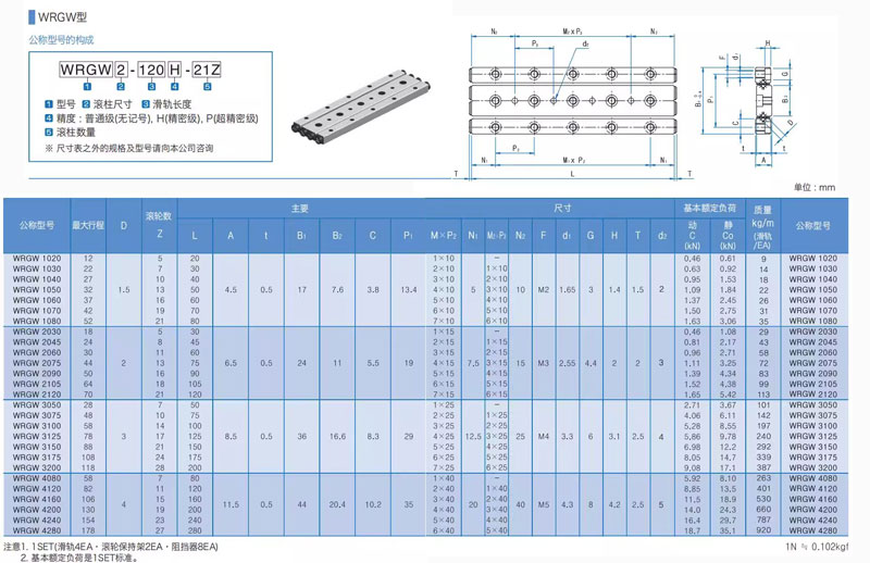 Bảng Thông Số Kỹ Thuật Dẫn Hướng Con Lăn Chữ Thập WRGW