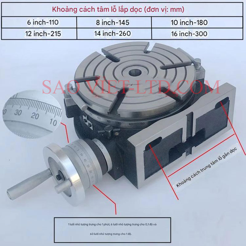 - Được tích hợp với nhiều lỗ hoặc rãnh chia đều, cho phép chia chi tiết theo các góc độ chính xác.