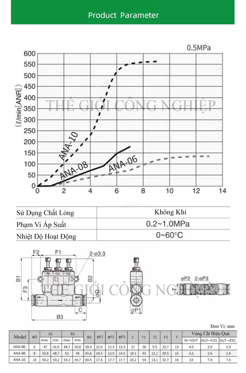 Mô Tả Chi Tiết: Đầu Giảm Chấn Khí Nén Ngoài Điều Chỉnh Tốc Độ ANA SA-060810