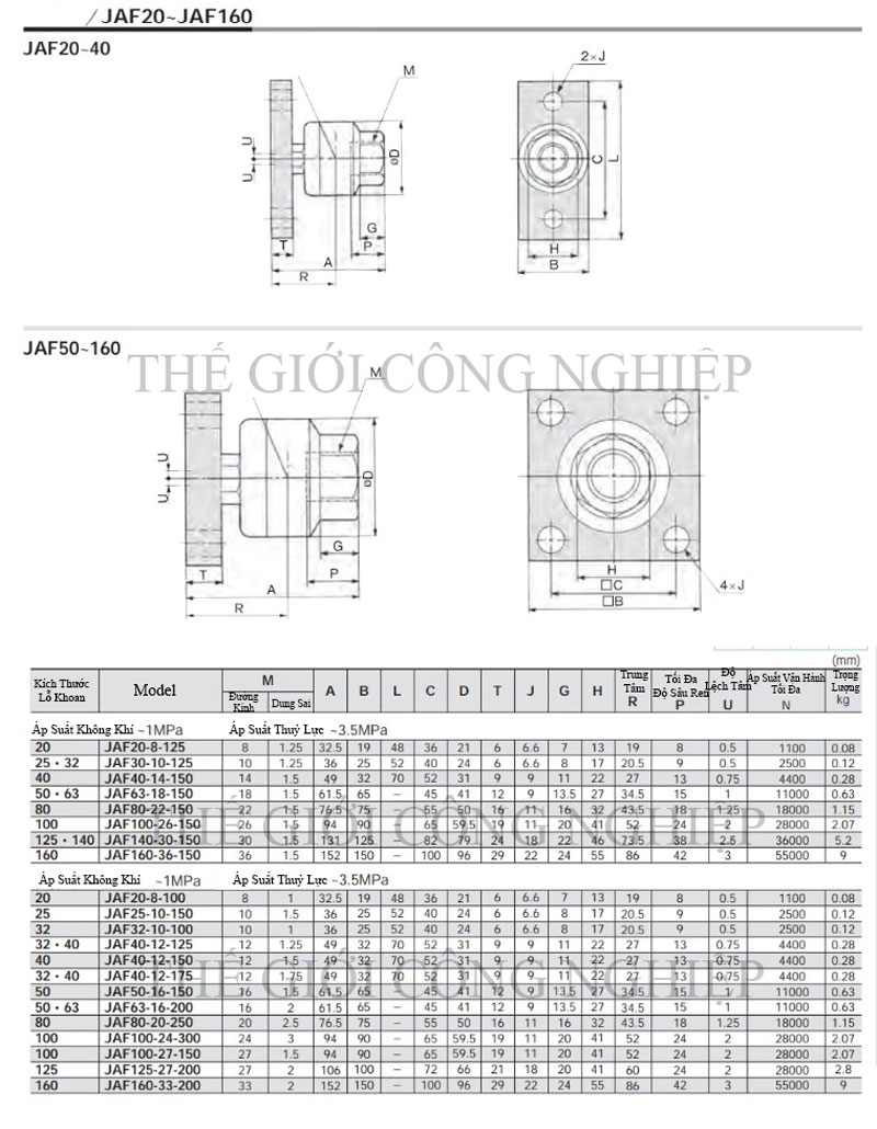 Mã sản phẩm: JA-20, JA-30, JA-40, JA-50, JA-63, JA-80, JA-100