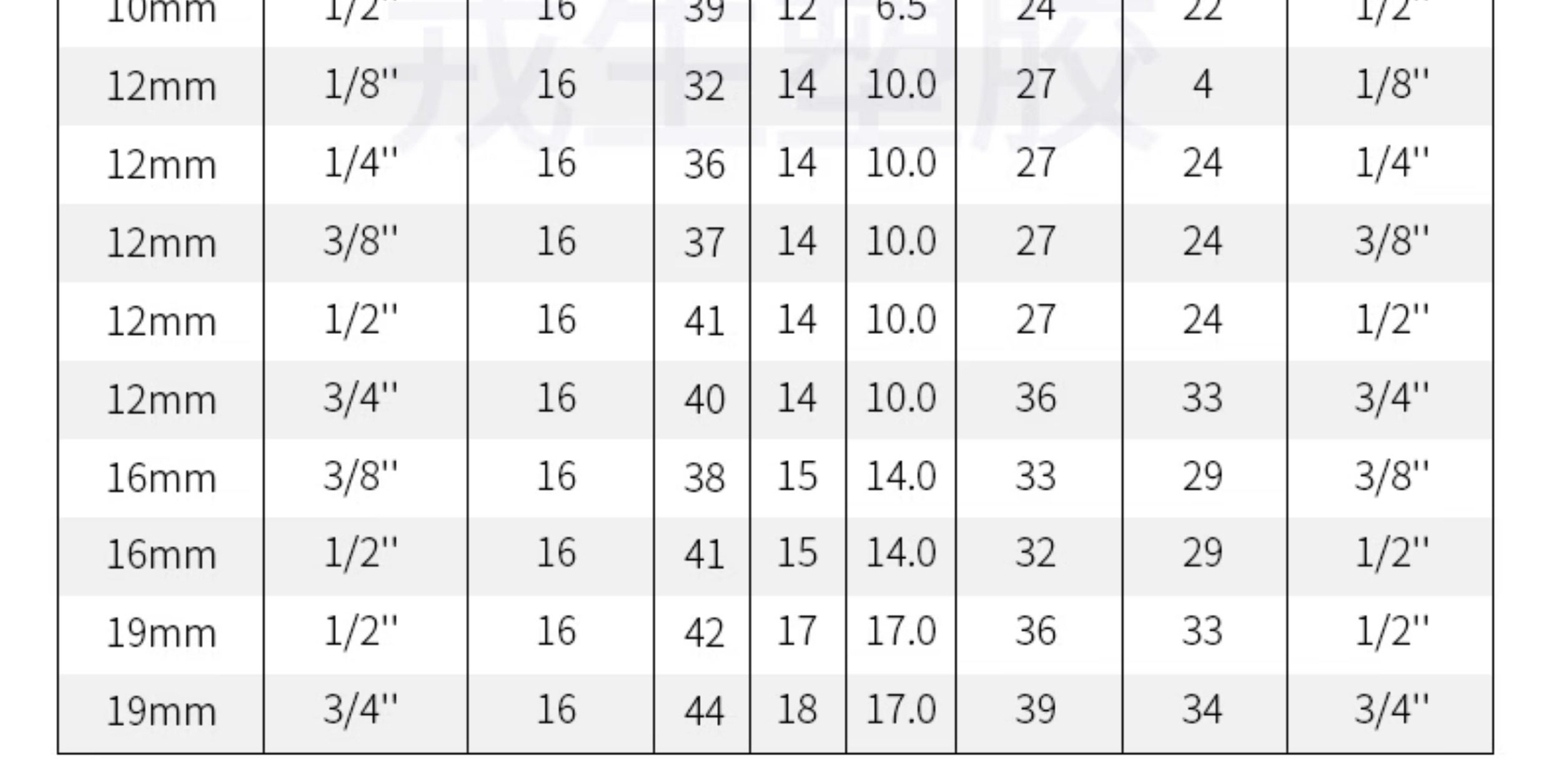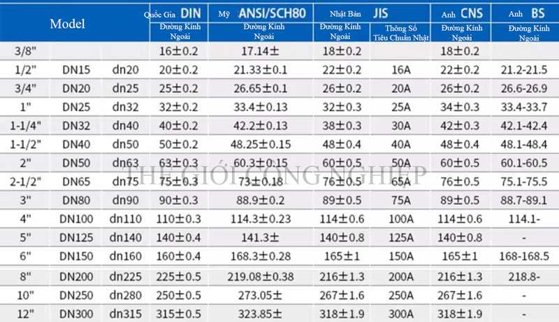Kích thước phổ biến: 1/4”, 3/8”, 1/2”, 3/4”, 1”, 1-1/2”, 2”...