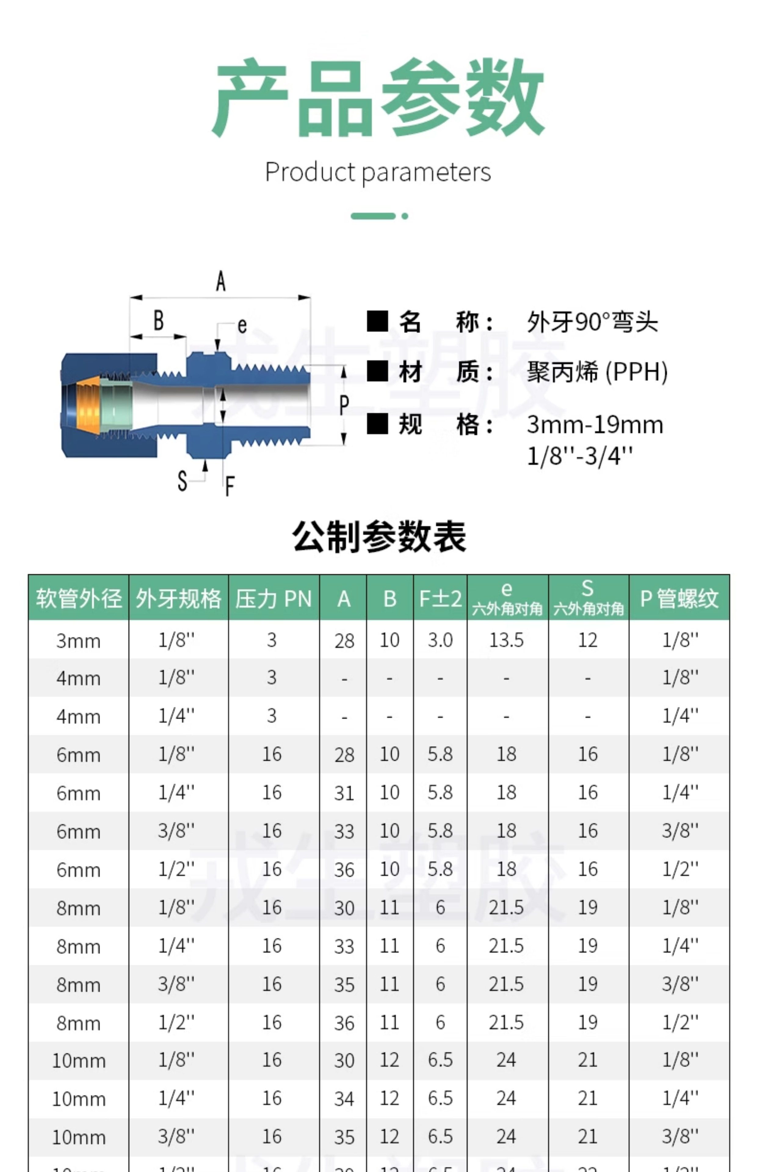 Mô tả chi tiết: Đầu nối thẳng ren ngoài nhựa PP