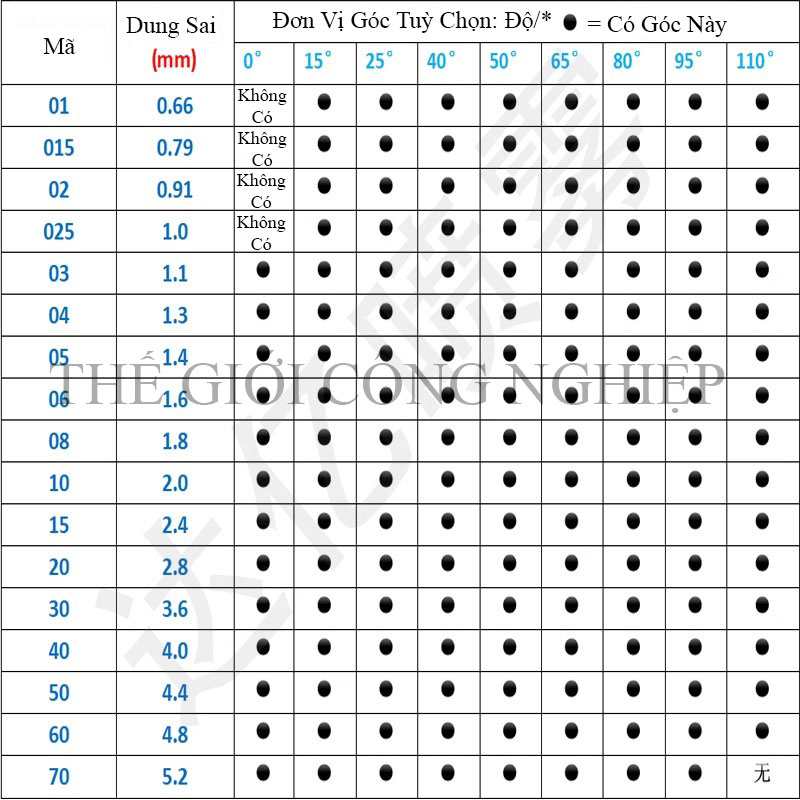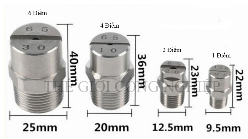 Đầu phun 304 inox có nhiều lựa chọn về góc phun (0°, 15°, 25°, 40°…) và lưu lượng khác nhau, giúp người dùng dễ dàng chọn loại phù hợp cho từng công việc. Kích thước ren tiêu chuẩn, lắp đặt nhanh chóng và tương thích với hầu hết các loại máy rửa xe, máy phun áp lực cao và hệ thống vệ sinh công nghiệp. Sản phẩm đặc biệt phù hợp cho các ngành nghề như: rửa xe chuyên nghiệp, vệ sinh nhà xưởng, thiết bị máy móc, ngành chế biến thực phẩm, sản xuất linh kiện cơ khí, hoặc xây dựng.