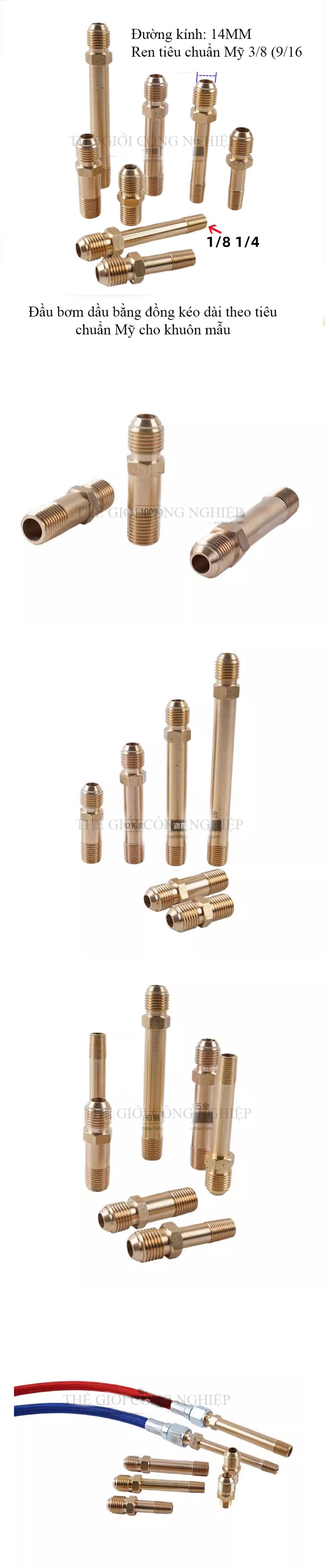 - Ren tiêu chuẩn Mỹ (NPT, BSPT): 1/8", 1/4", 3/8", 1/2", 9/16"