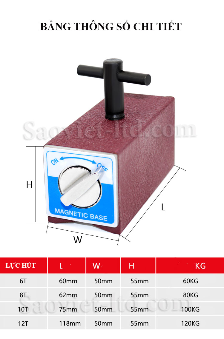 BẢNG THÔNG SỐ KỸ THUẬT ĐẾ TỪ NAM CHÂM GÁ VÀ ĐỊNH VỊ CHI TIẾT