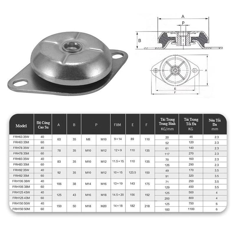 Đệm cao su giảm chấn dạng bát FRH/RS: