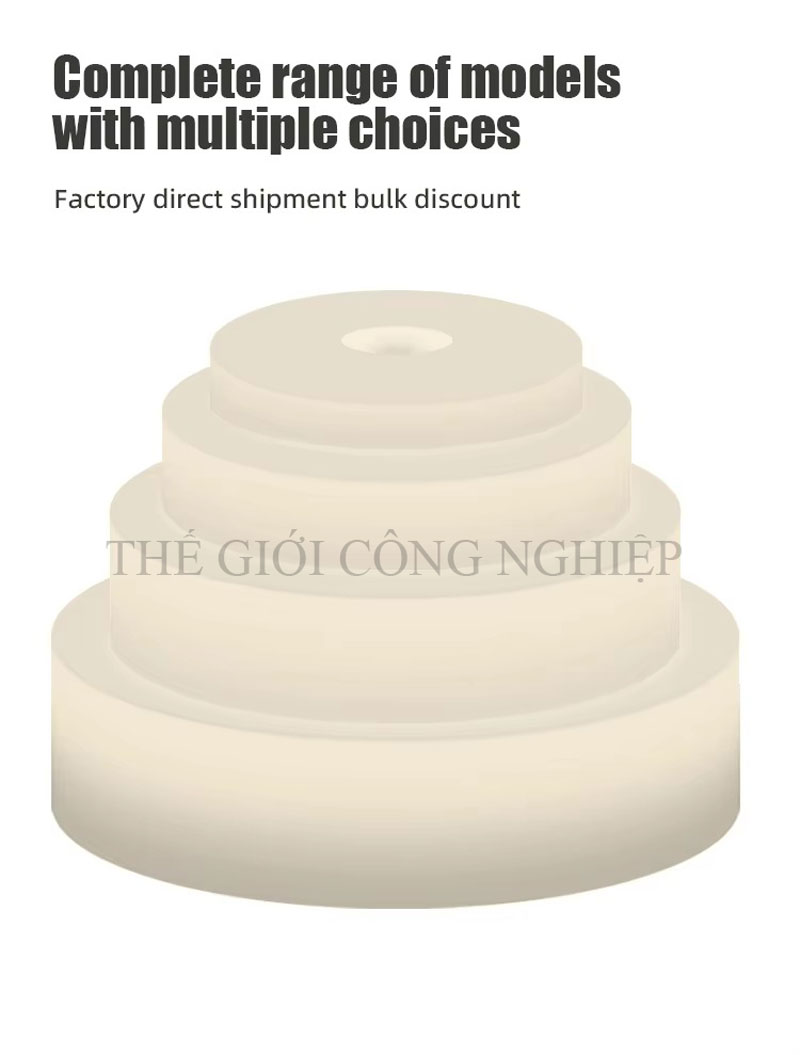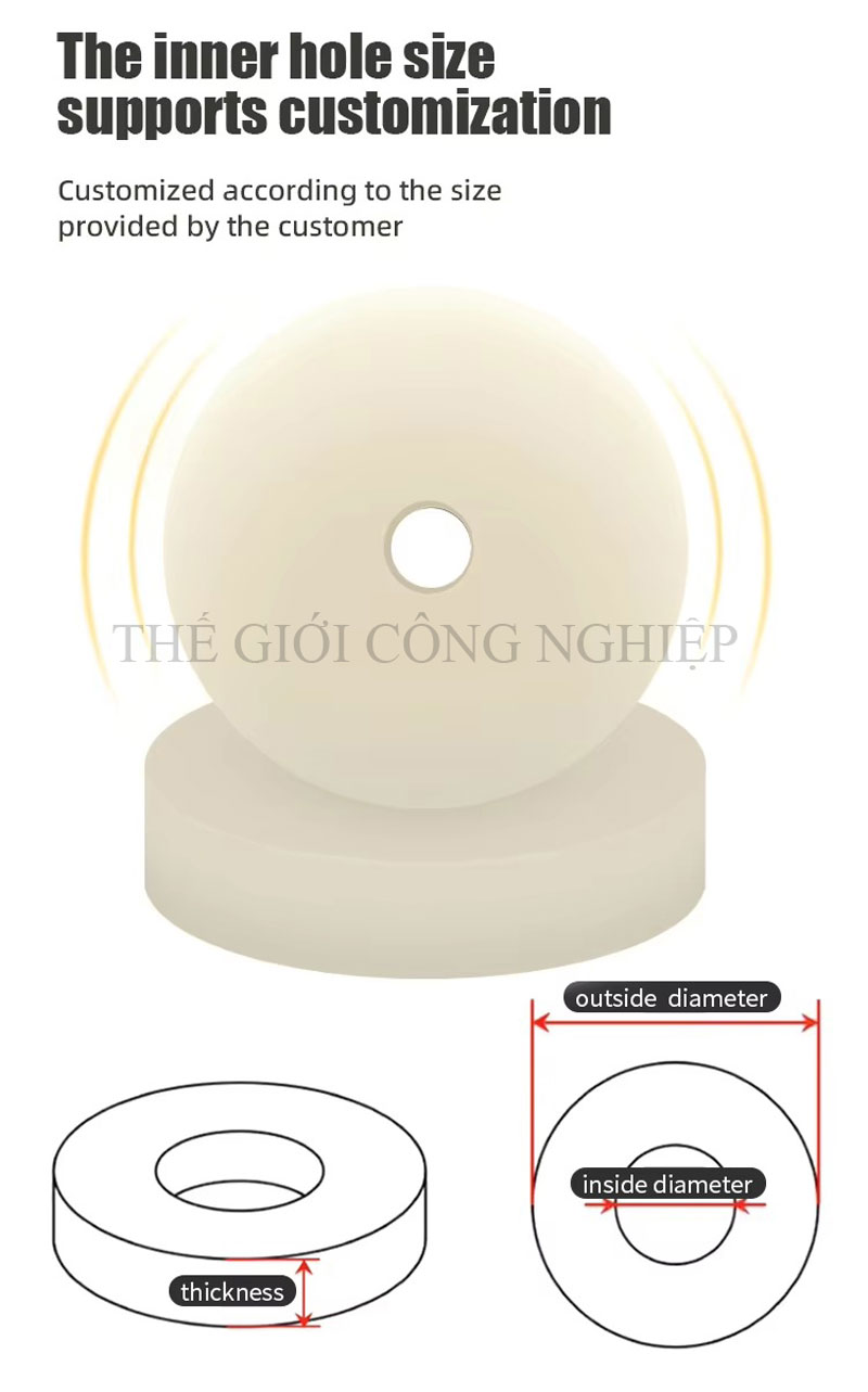 Có thể sản xuất ở nhiều kích thước, độ dày và độ cứng (Shore A 30–70) tùy theo tải trọng của từng loại máy móc.